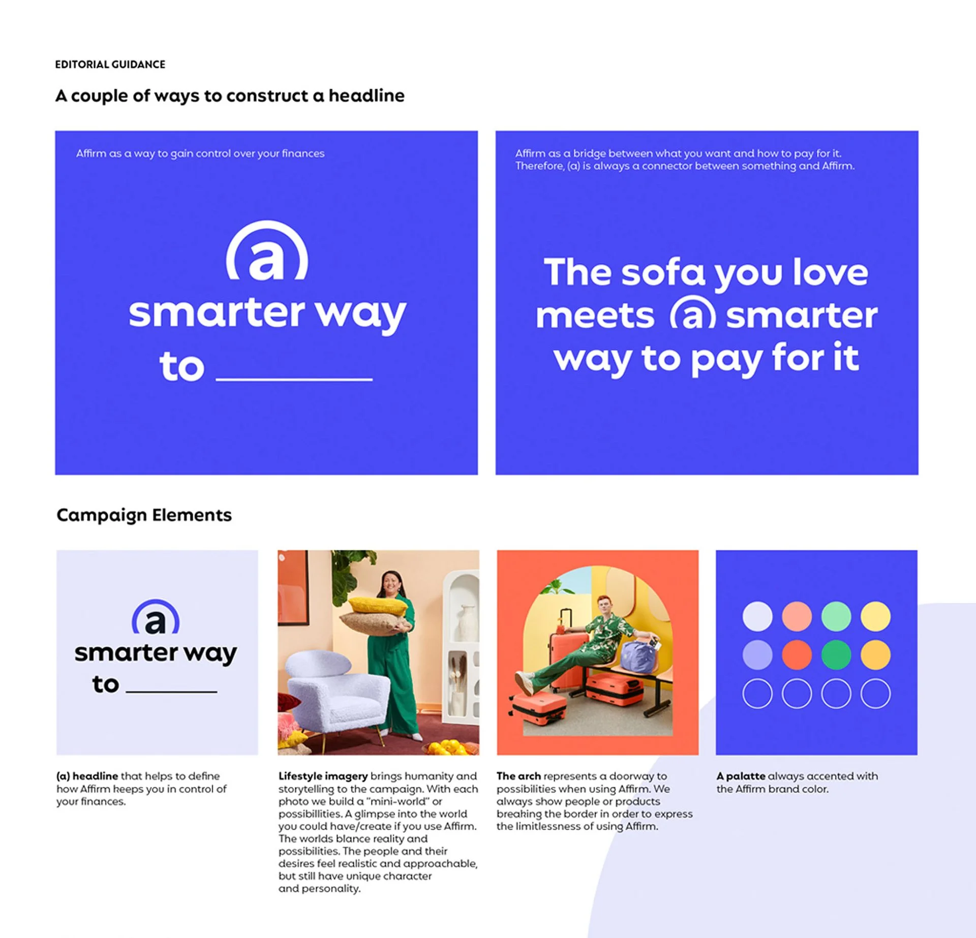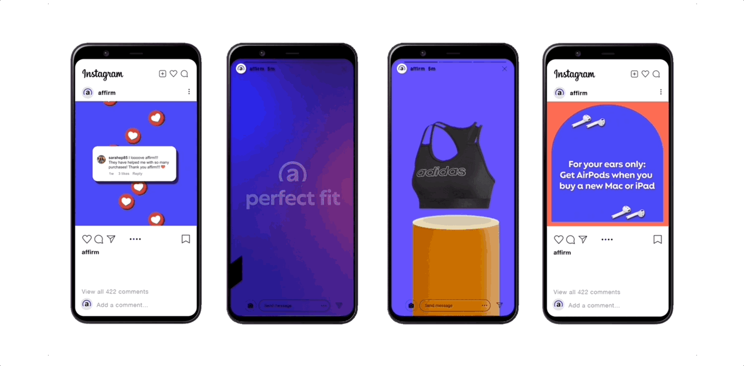 For Affirm, I helped develop a campaign platform that extended their new brand identity across multiple initiatives. The project connected Affirm's core promise to a product launch, social campaign, B2B activations, and holiday campaign. Deliverables included assets for print, online ads, out-of-home displays, social media, and email marketing, ensuring consistent brand messaging across all channels.